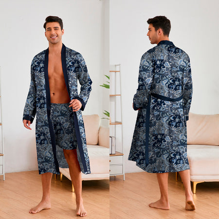 Men’s Printed Nightgown Set | Long Sleeve Shorts Home Pajamas