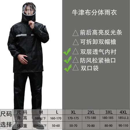 Split Raincoat Design: Allows freedom of movement for riding, commuting, or outdoor work.