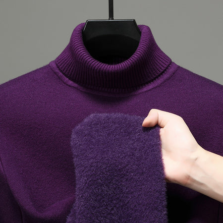 Upgrade your 2025 autumn and winter wardrobe with this one-piece velvet men’s sweater. Designed with a high collar and plus-velvet thickening, this casual bottoming knitted sweater combines warmth, comfort, and style, making it perfect for daily wear or layering under jackets.