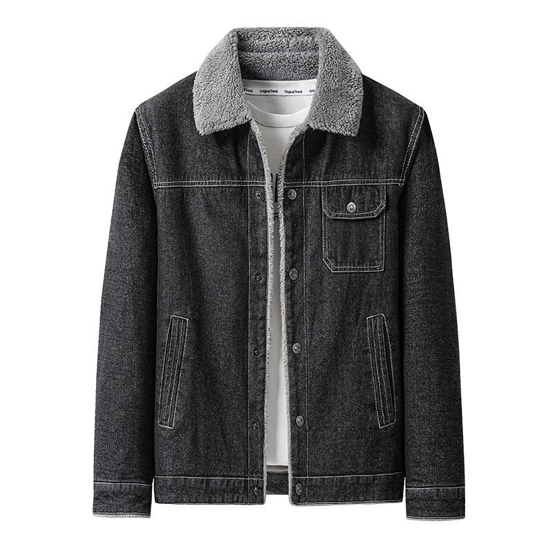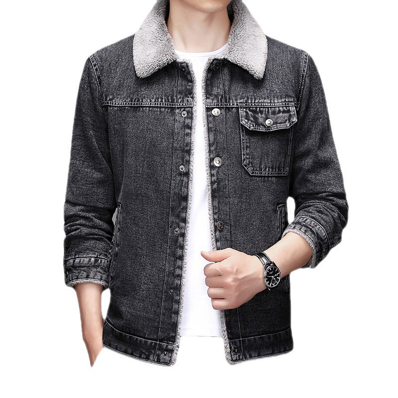 Men’s Winter Denim Coat | Fleece-Lined Lamb Fur Thick Jacket