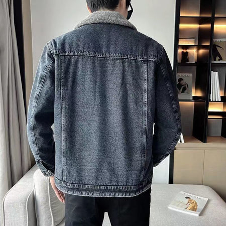 Men’s Winter Denim Jacket | Fleece-Lined Wool Collar Slim Fit