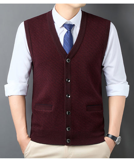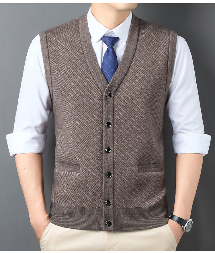 Refined and versatile, this old money sleeveless sweater vest features a button-down front for a polished, fashion-forward look. Perfect for men who value understated luxury in their everyday outfits.