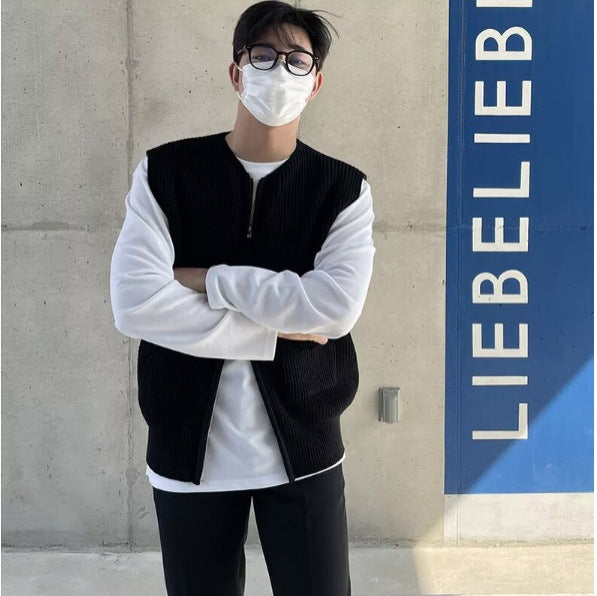 This sleeveless sweater vest blends comfort, versatility, and vintage charm, making it a must-have for autumn and winter layering.