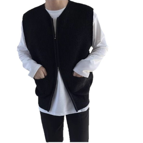 Sleeveless Sweater – Retro Solid Color Cardigan Vest