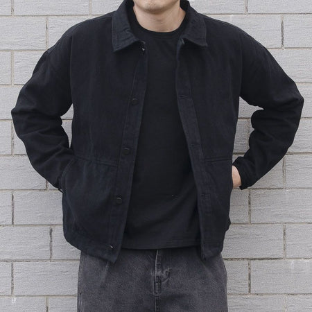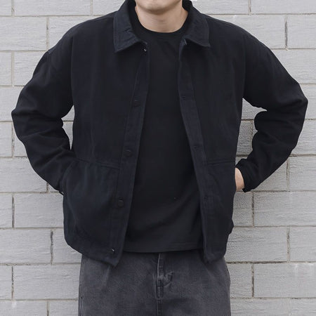 Upgrade your wardrobe with this versatile black denim jacket that offers comfort, durability, and on-trend design. A must-have for men seeking a relaxed yet stylish outerwear piece this spring and autumn.