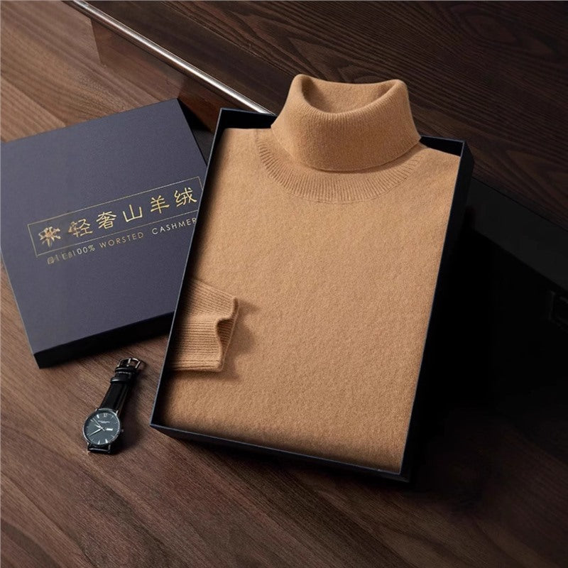 Men’s High Neck Fleece-Lined Sweater – Slim Fit Knit