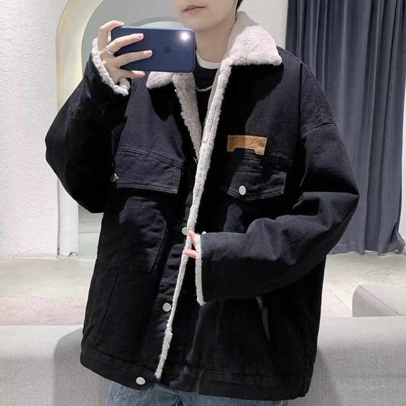 Elevate your autumn and winter wardrobe with this stylish men’s denim coat, designed for warmth, comfort, and modern fashion. Featuring a soft lamb velvet lining and thickened cotton padding, this jacket keeps you cozy on chilly days while maintaining a sleek, Korean-inspired look. ❄️🧥