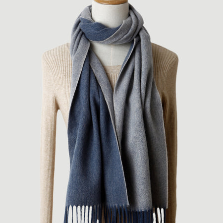 This scarf adds elegance and functionality to your outfit. The thick fabric keeps you warm, while the two-tone design and tassels add flair. Ideal for professional meetings or stylish streetwear.