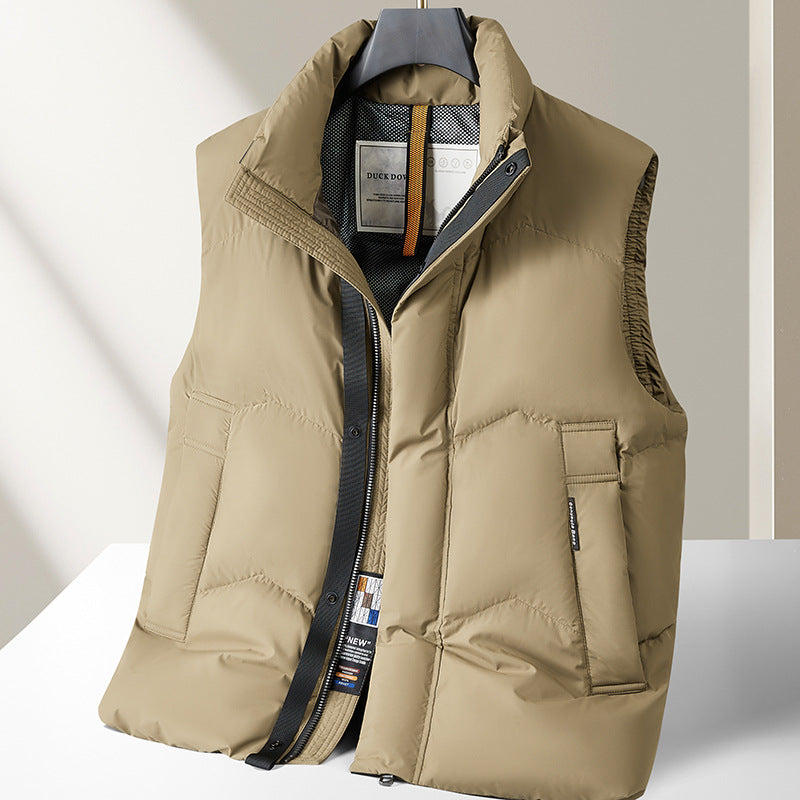 A must-have duck down vest for men seeking style, warmth, and lightweight comfort.