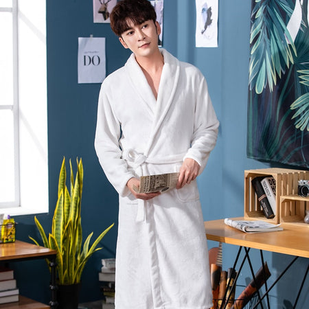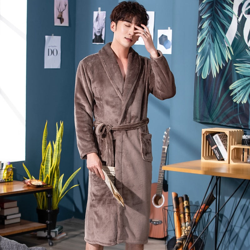Men's Flannel Bathrobe | Autumn Winter Hotel Nightgown