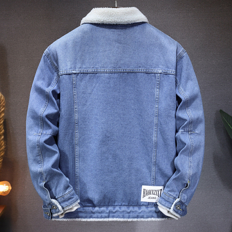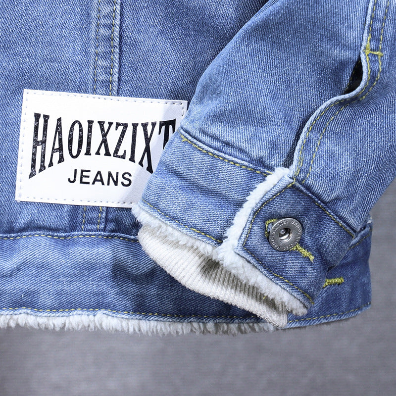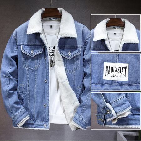 Men's Fleece-Lined Thickened Denim Jacket Warm Cotton-Padded 2024