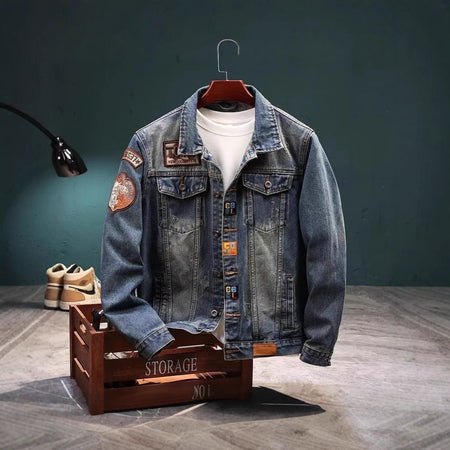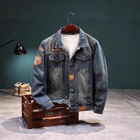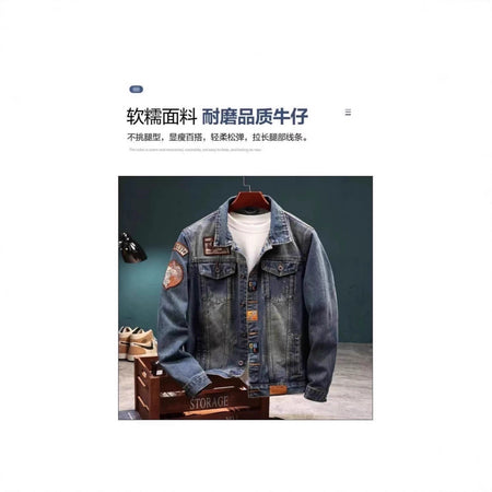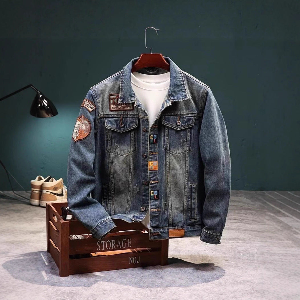 Bring timeless fashion to your wardrobe with this men’s high-end denim jacket. Perfect for spring and autumn, this casual workwear-inspired piece combines trendy brand styling with American retro vibes—making it a standout choice for men who value both durability and design.