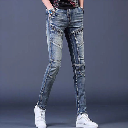 Elevate your seasonal wardrobe with these Men’s Spring and Autumn Slim-Fit Jeans, perfect for fashion-forward men who love trendy, versatile style. Featuring a washed vintage design and skinny biker-inspired cut, these jeans combine comfort, durability, and modern aesthetics, making them ideal for casual outings, social events, or streetwear looks.