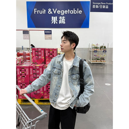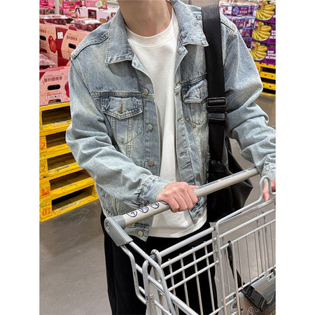 Men's Light Blue Washed Denim Jacket Retro Workwear