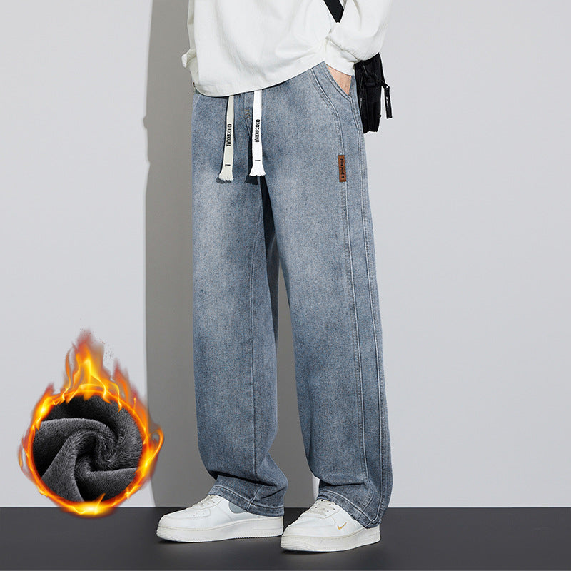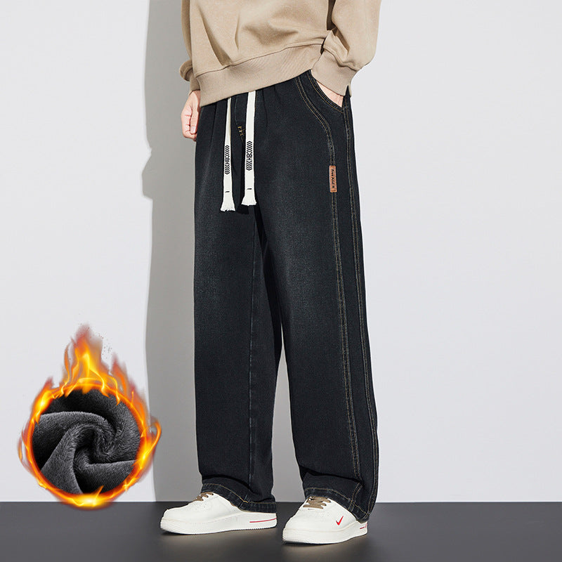Wide-Leg Thick Velvet Jeans Trendy Winter Men Nepal
