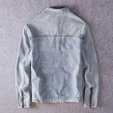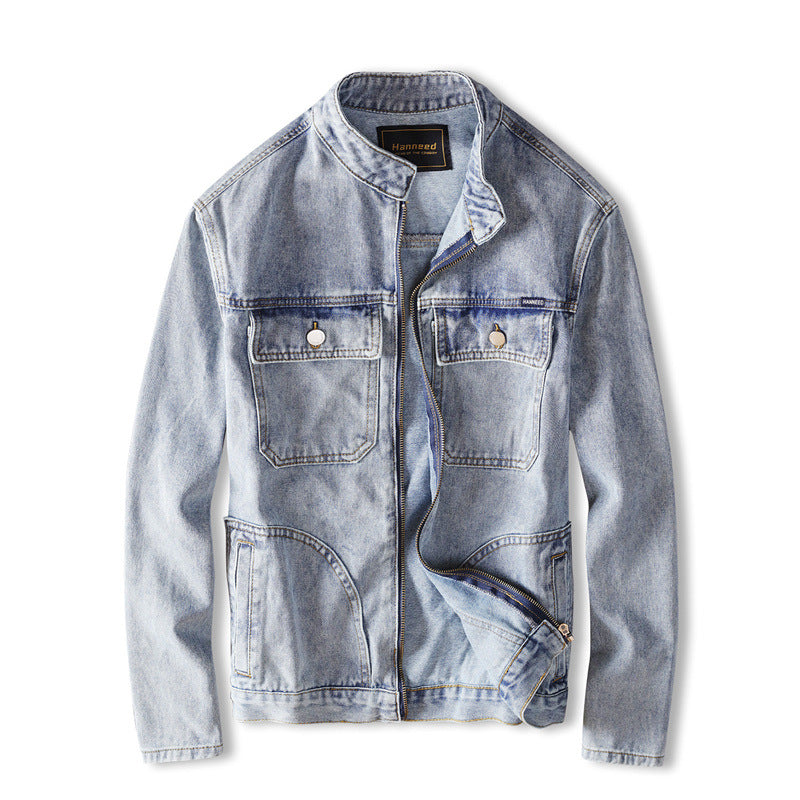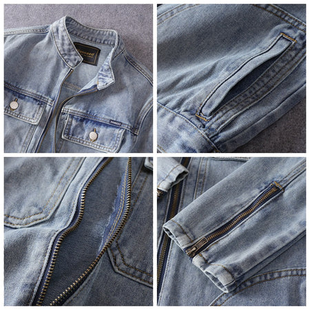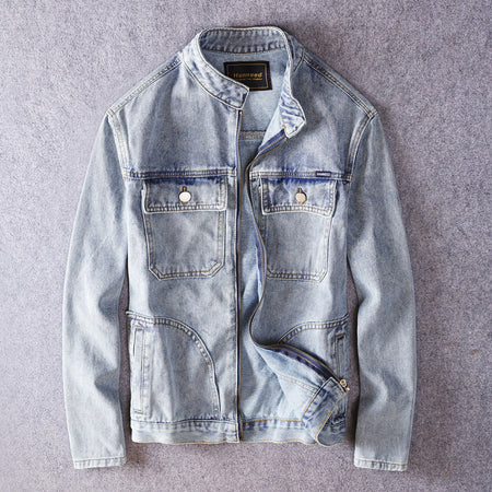 Men's Retro Washed Denim Jacket Stand Collar Japanese Style