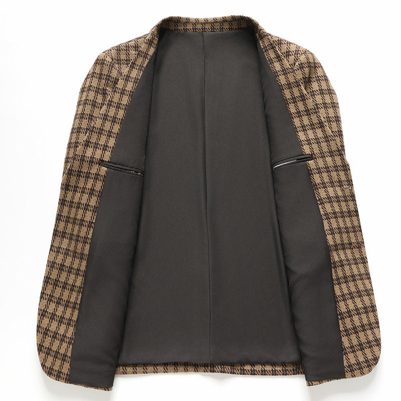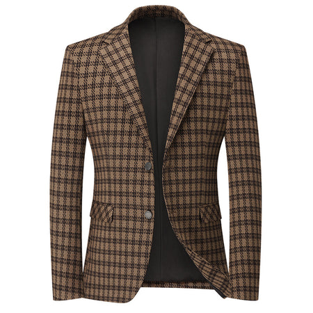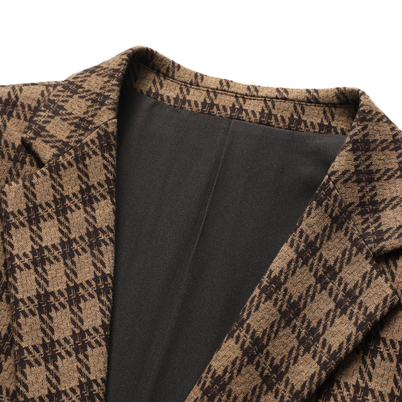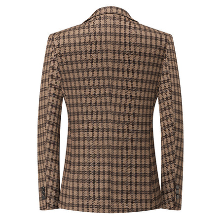 Bring effortless sophistication to your spring and autumn wardrobe with this light luxury houndstooth men’s suit jacket. Perfect for young professionals and middle-aged men, it balances business polish with casual ease.
