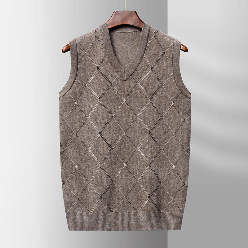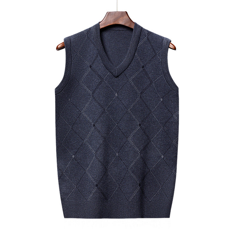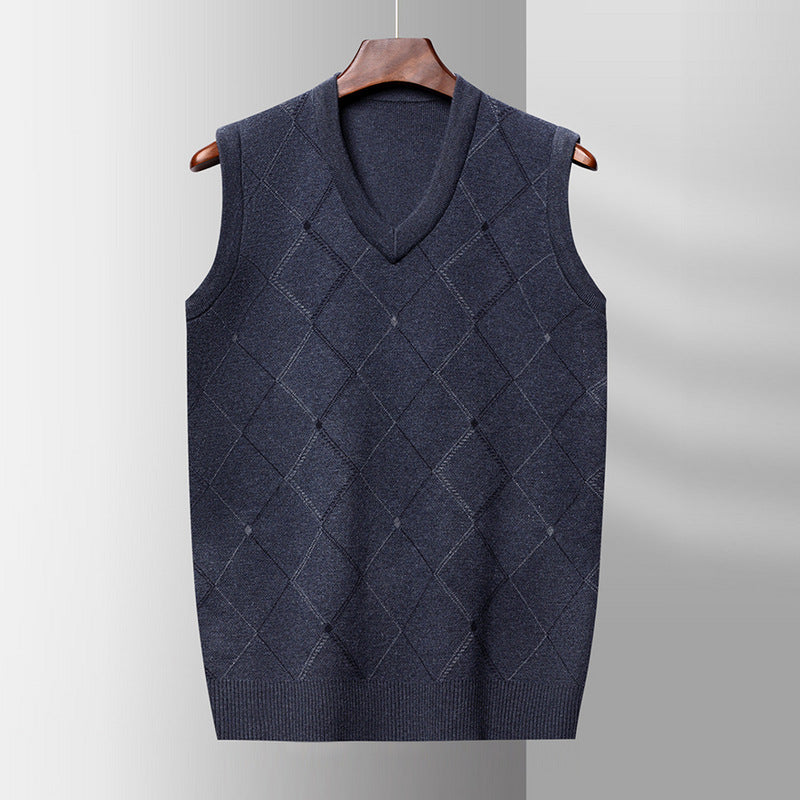 Stay warm in style with this thickened wool sleeveless sweater vest, featuring a classic jacquard knit pattern. Designed for autumn and winter, it combines warmth with effortless fashion.