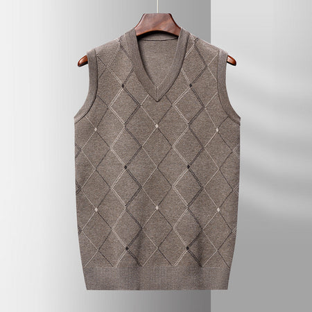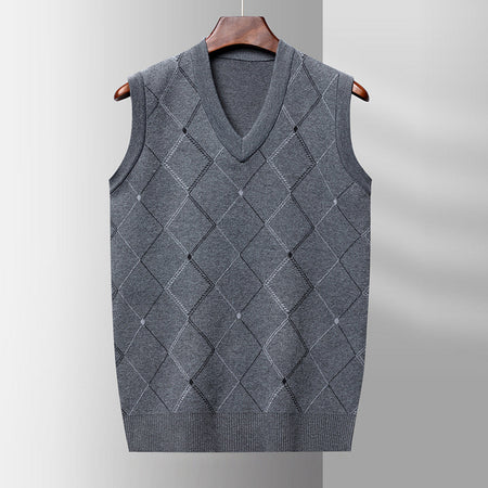 Sleeveless Sweater – Thick Wool Jacquard V-Neck Vest