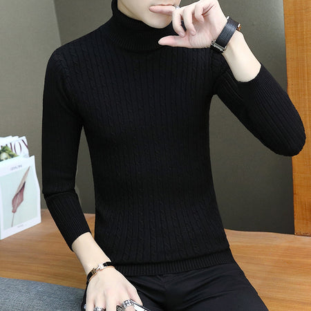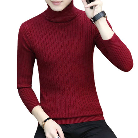 Men’s Slim-Fit Turtleneck Sweater – Solid Color Knit