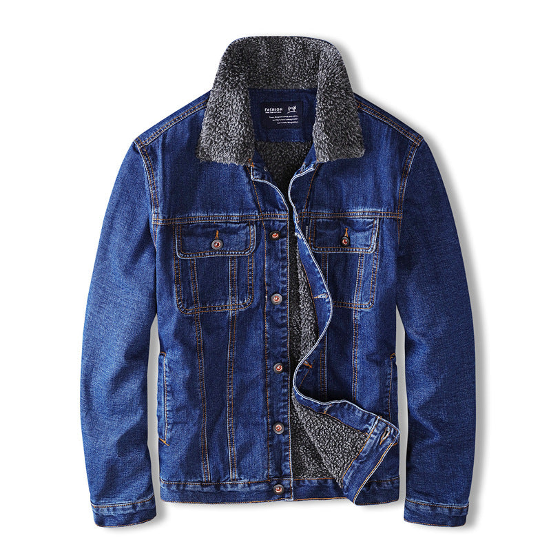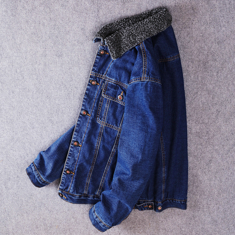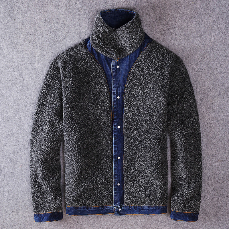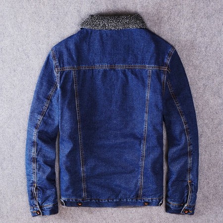 Men's Velvet-Lined Denim Jacket Slim Fit Lamb Velvet Winter Coat