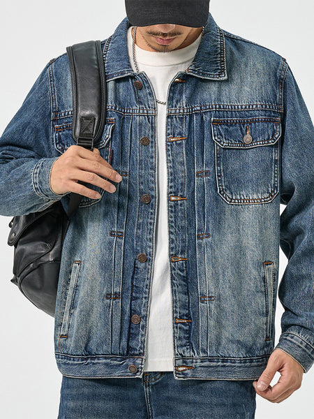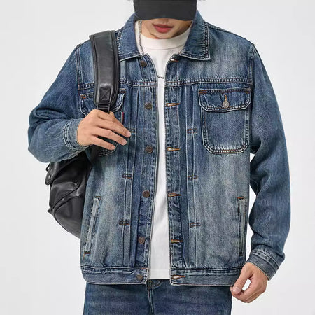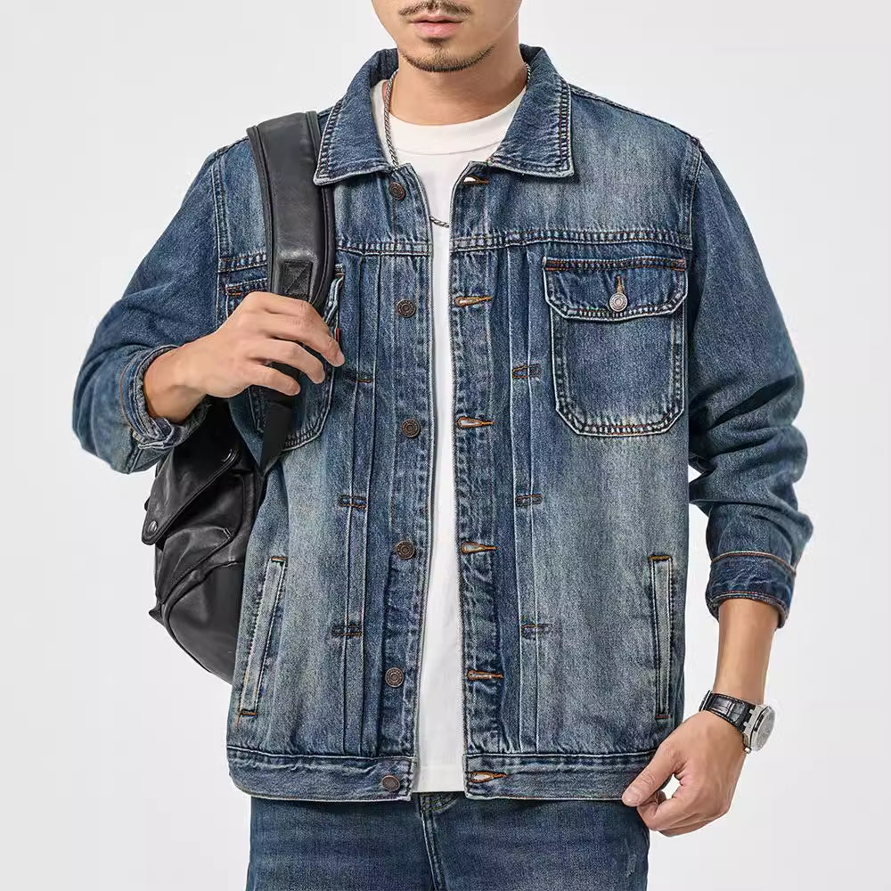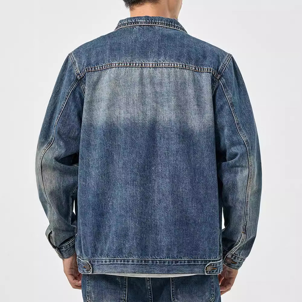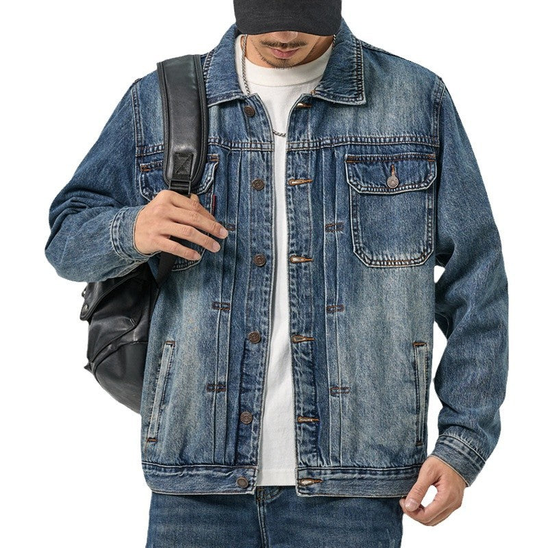 Men's Water Washed Blue Denim Jacket Retro Loose Autumn Winter