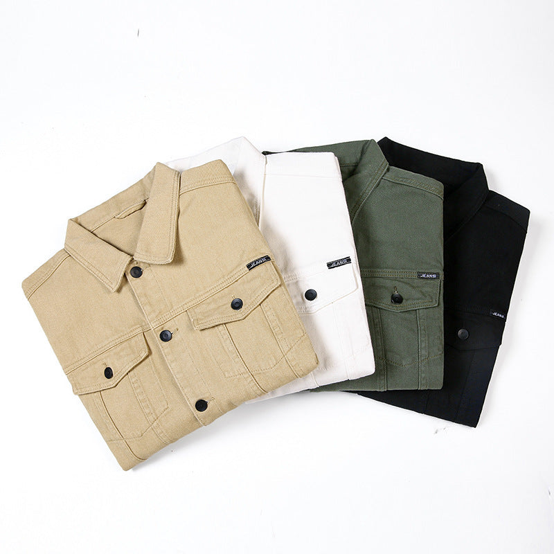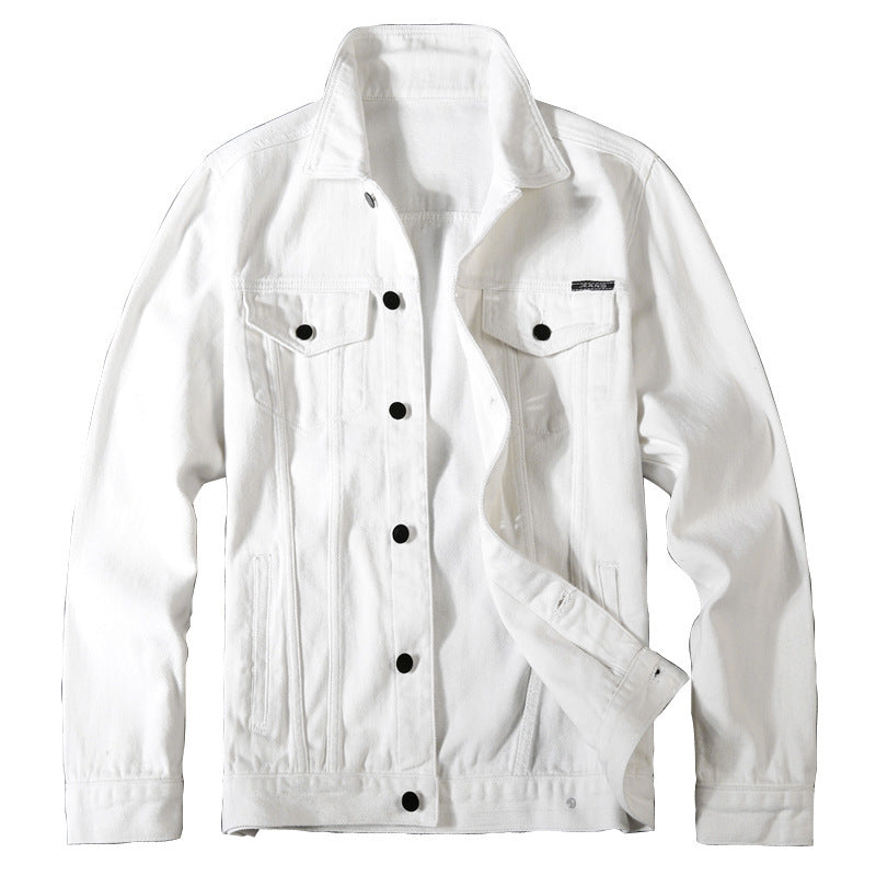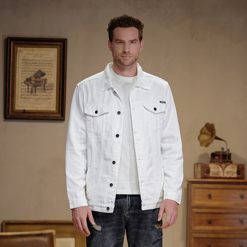 Men's White Denim Jacket – Korean & Japanese Slim-Fit Workwear