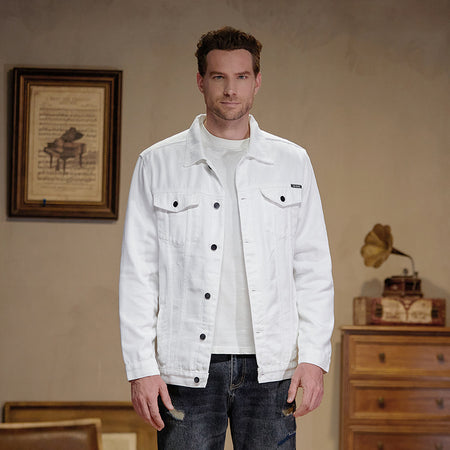 Upgrade your wardrobe with this simple, all-match pure white denim jacket, designed for fashionable youth and modern men. Combining Korean and Japanese style influences, this slim-fit jacket delivers a handsome, contemporary look while remaining versatile for casual, work, or streetwear outfits.
