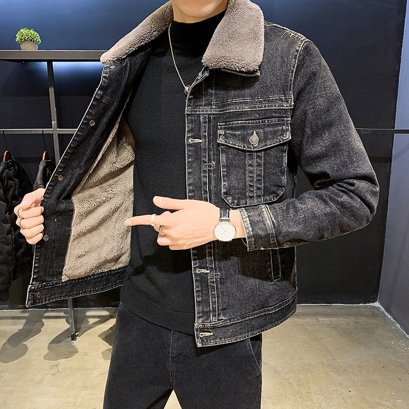 Stay cozy and stylish this winter with our men’s velvet-padded denim jacket, designed with a warm lamb fur collar and a sleek Korean-inspired slim fit. Perfect for cold-weather fashion, this jacket offers a balance of comfort, warmth, and modern style for men who want to look sharp all season long. ❄️🧥