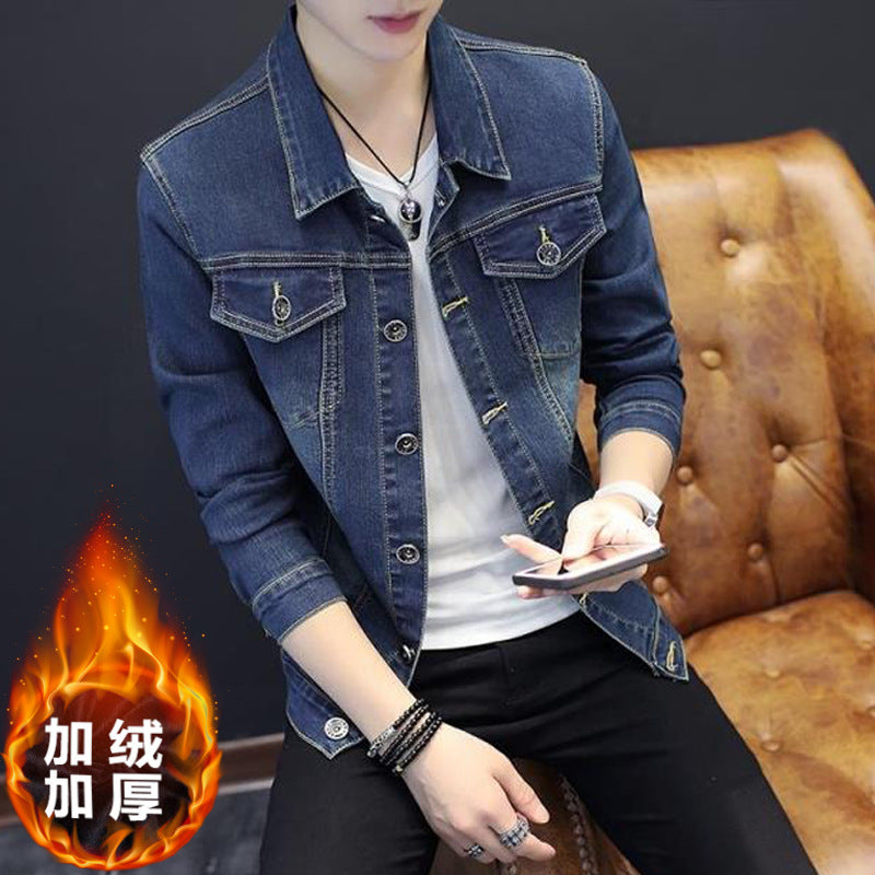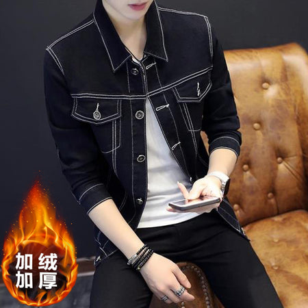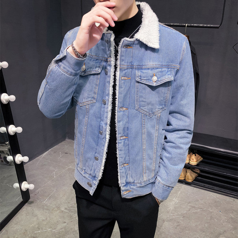 Men's Winter Fur Collar Denim Jacket Fleece-Lined Slim Fit Coat