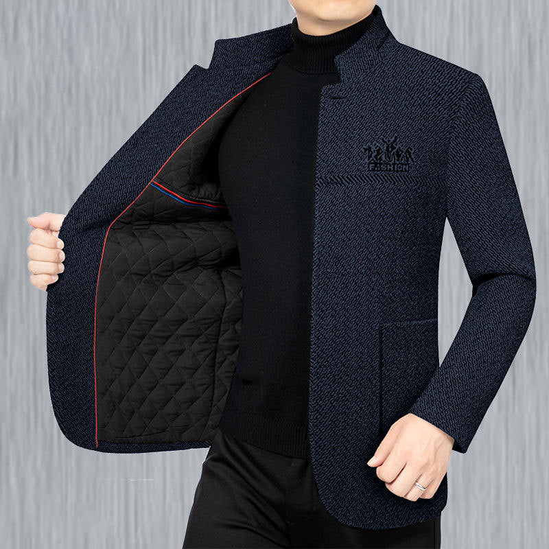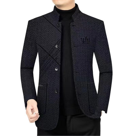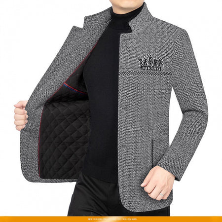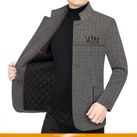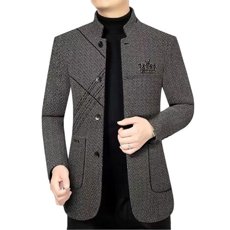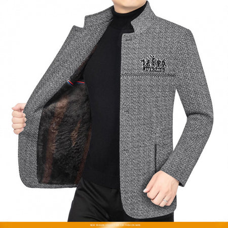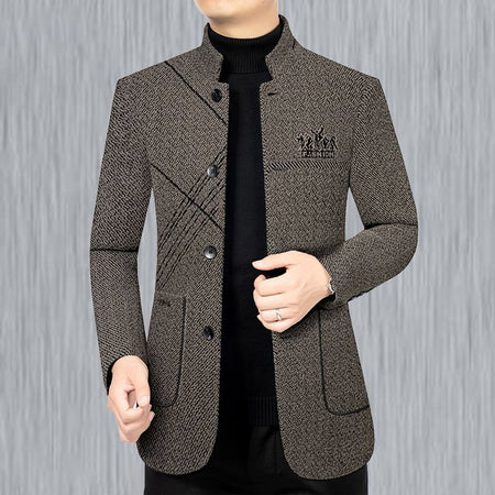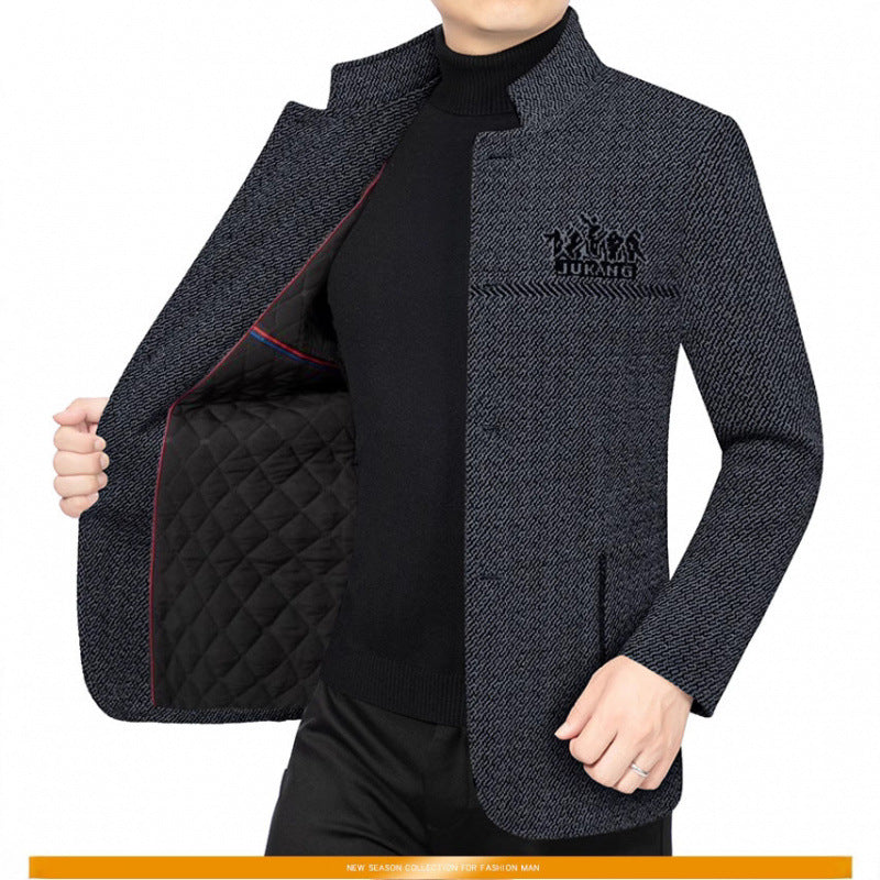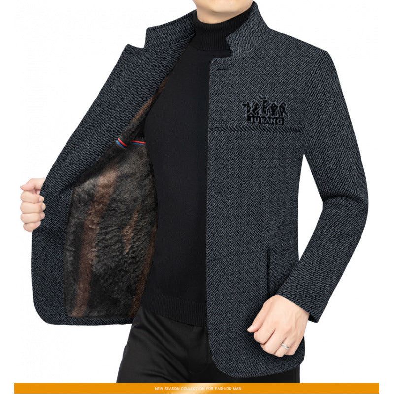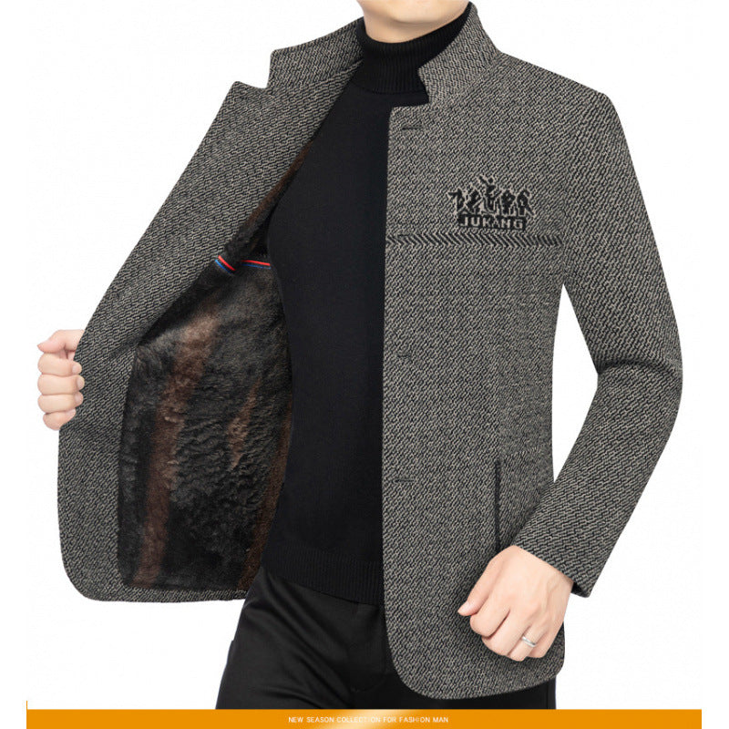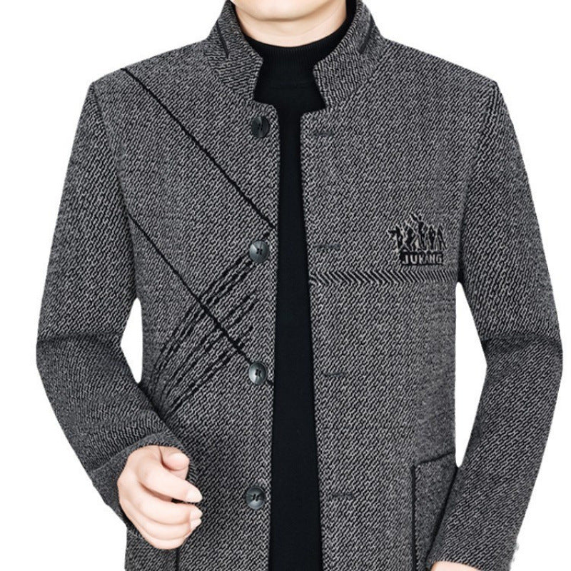 Men’s Woolen Coat – Middle-Aged Stand Collar Padded Dad Jacket Autumn Winter