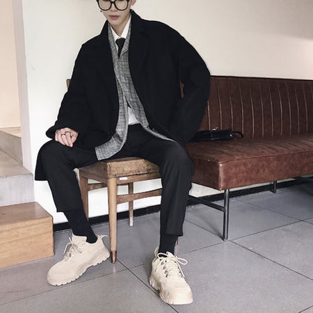 Korean Style Wool Overcoat – Men’s Mid-Length Casual Coat