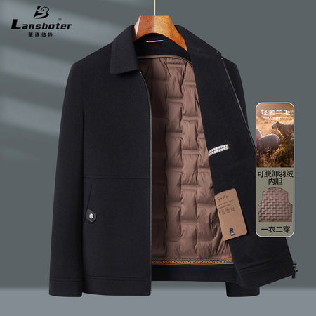 Men’s Business Down Wool Coat – Detachable Liner Double-Sided Jacket for Autumn/Winter