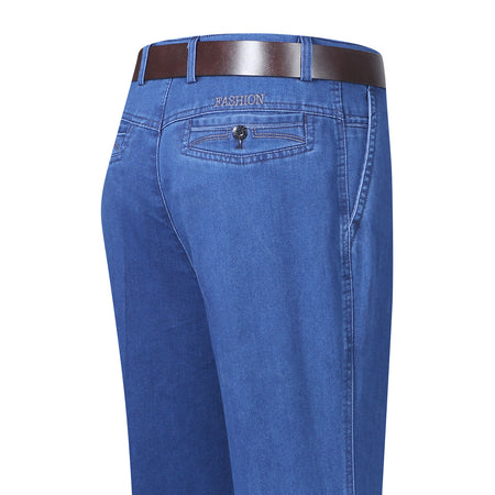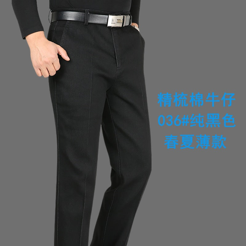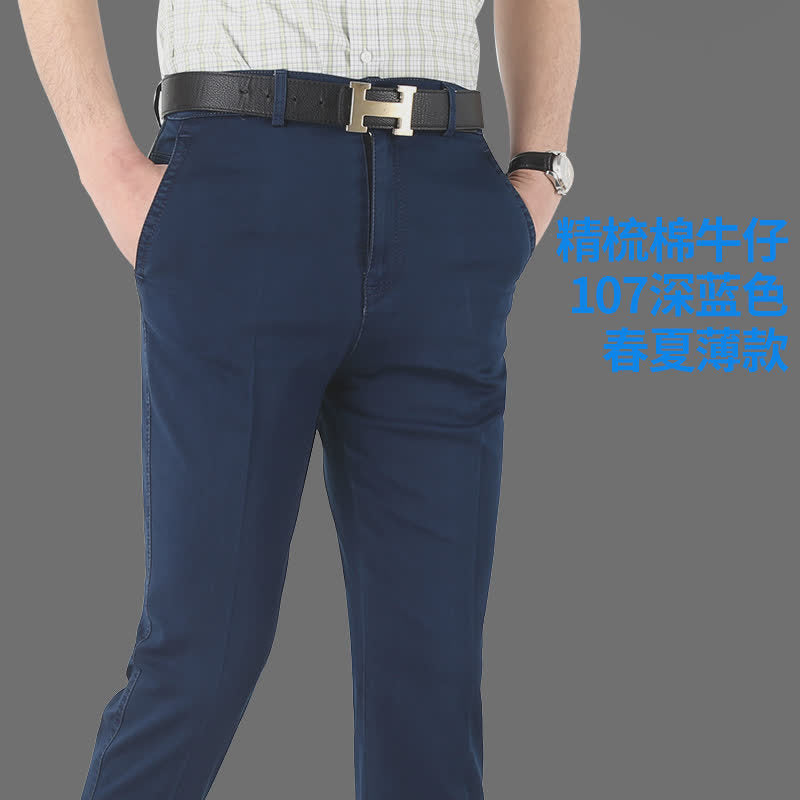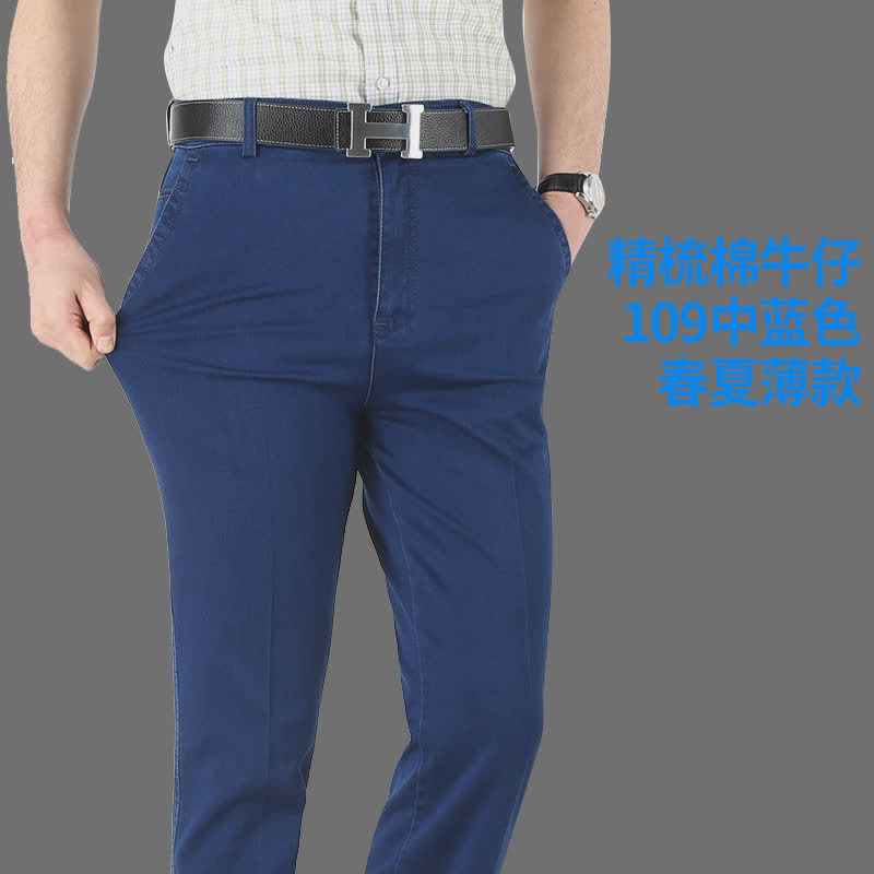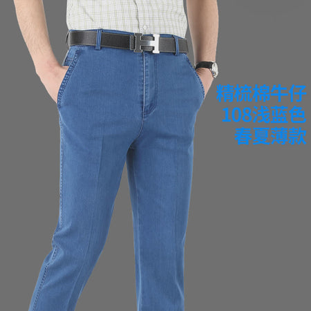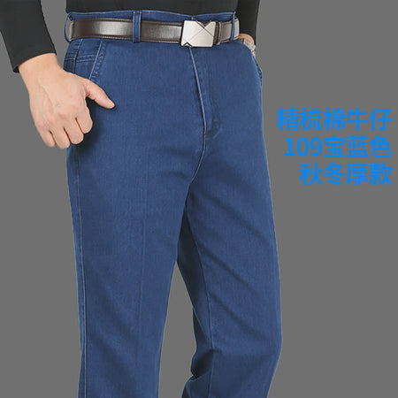 Experience comfort and timeless style with these Middle-Aged Men’s Elastic Jeans, crafted for dads and men who value both practicality and fashion. Featuring a high-waist design and deep straight loose fit, these casual long pants offer all-day comfort while keeping a polished, classic look suitable for everyday wear.