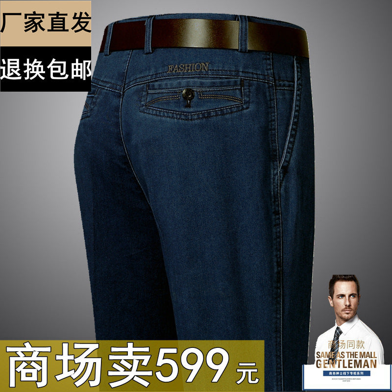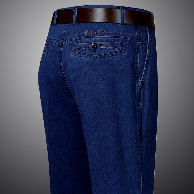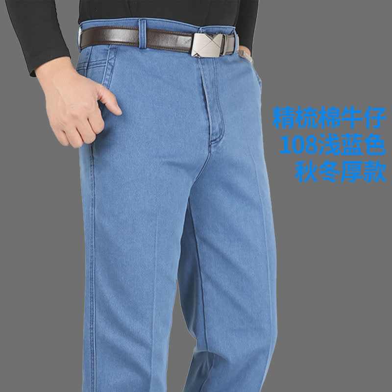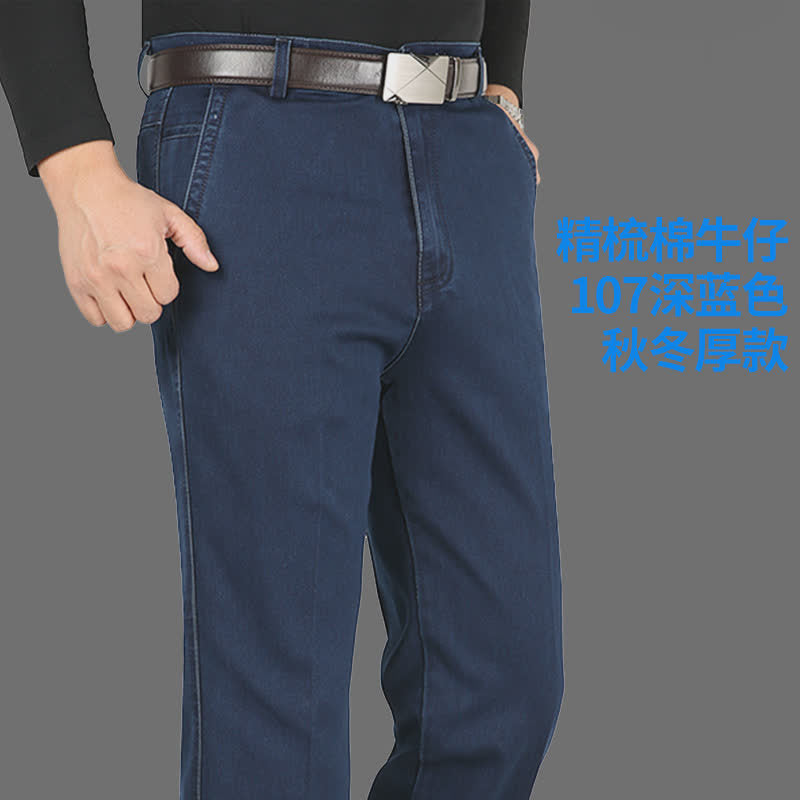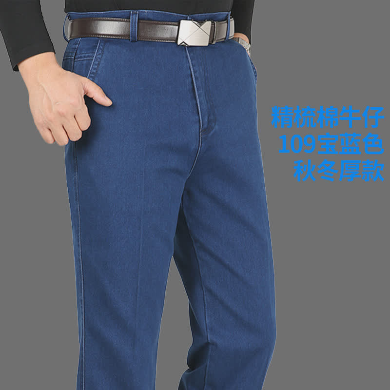 Middle-Aged Men’s High-Waist Jeans – Loose Straight Casual