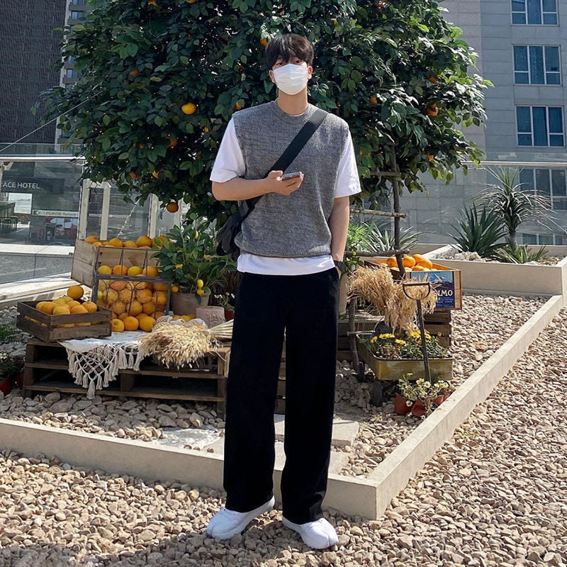 Stay cool and trendy with this summer sleeveless sweater vest, designed with a round neck and loose waistcoat style. Inspired by Korean fashion, it’s a versatile piece for layering or wearing on its own.