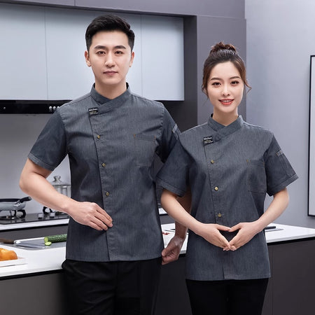 This long-sleeve chef jacket keeps you warm and comfortable while ensuring a professional presentation. Perfect for busy kitchens, it combines durability with style and allows for personalized branding through custom silk-screen logos. Lightweight yet robust, it’s an excellent choice for restaurant teams looking to unify their uniform style.