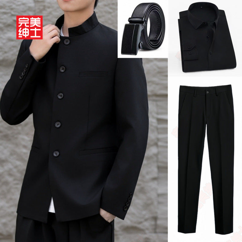 Men’s Chinese Stand Collar Tunic Suit Business Dress