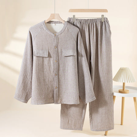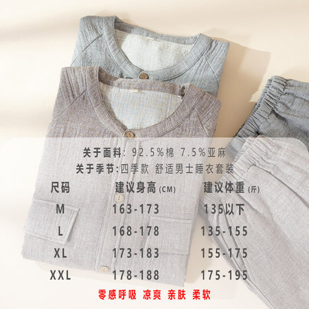 Men’s Cotton Linen Pajamas Loose Japanese Style Set