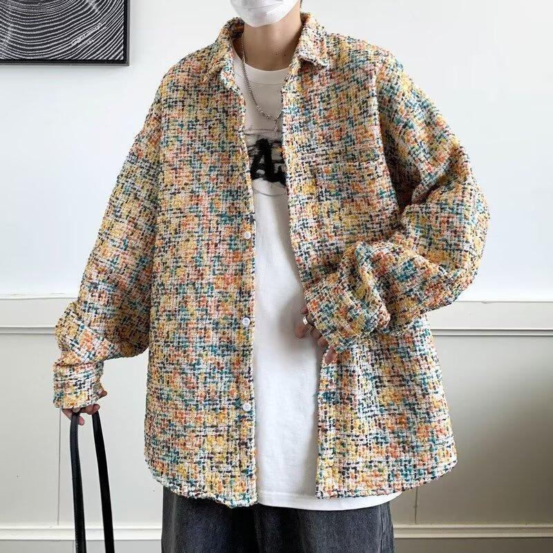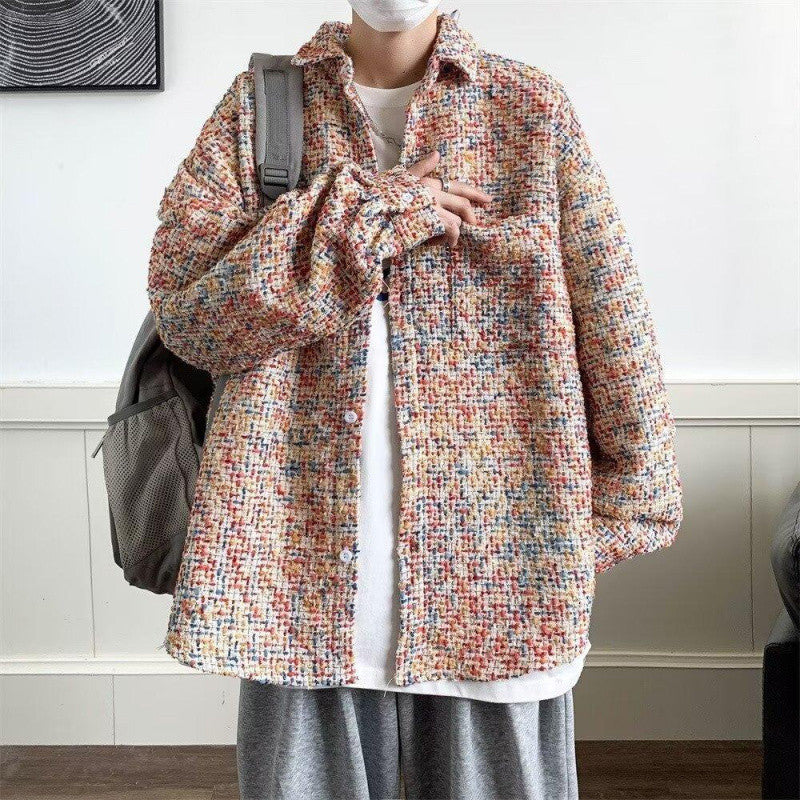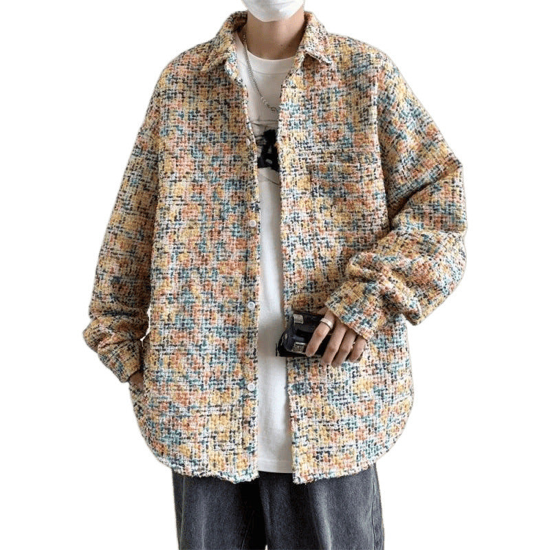 Men’s Houndstooth Overshirt Spring Autumn Casual