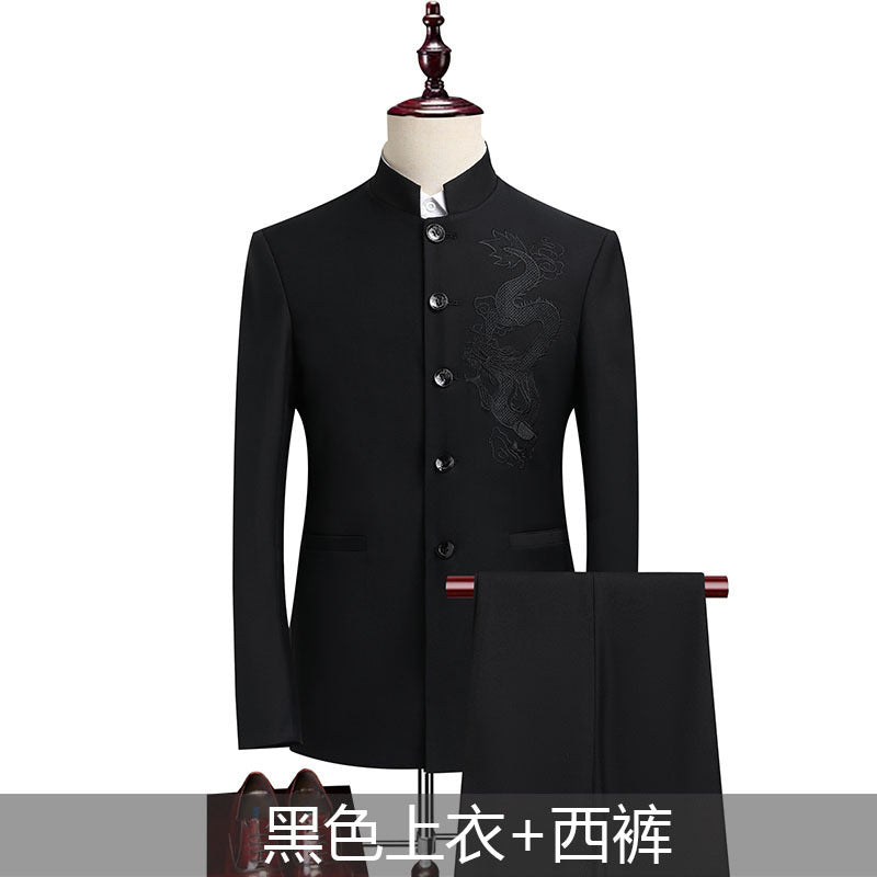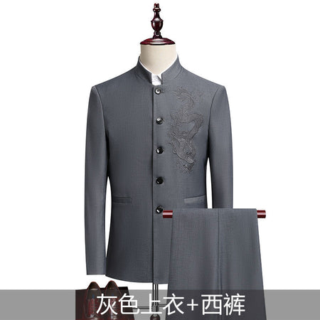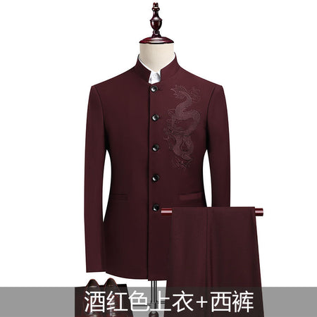 Men’s Zhongshan Suit Dragon Pattern Slim Wedding Outfit
