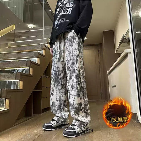 Tie-Dye Wide-Leg Sports Pants Men Teens