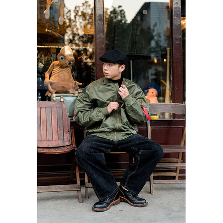 Men’s Loose MA-1 Nylon Bomber Jacket – American Military Style