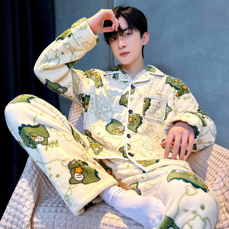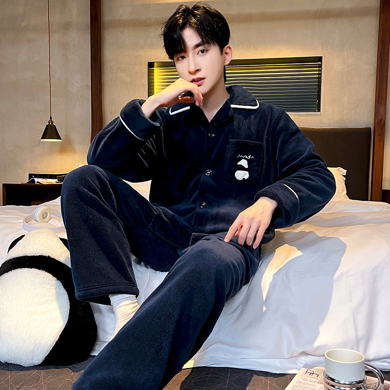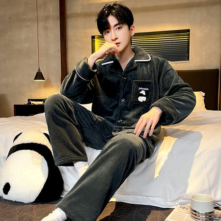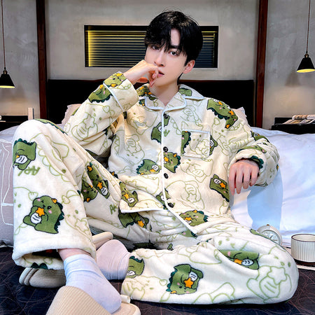 Men’s Coral Fleece Pajamas Winter Warm Flannel Suit