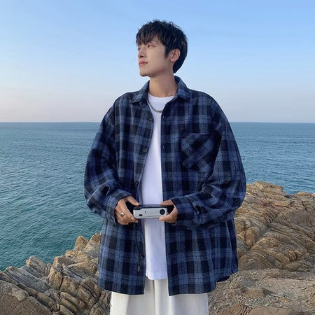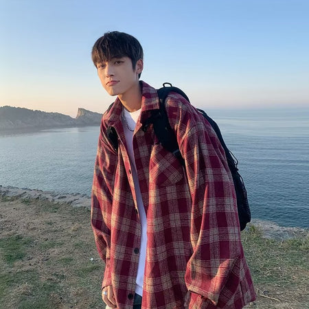 Bring nostalgic charm into your wardrobe with this American retro plaid men’s overshirt, designed for autumn 2025 trends. Loose, youthful, and comfortable, it’s perfect for everyday wear.