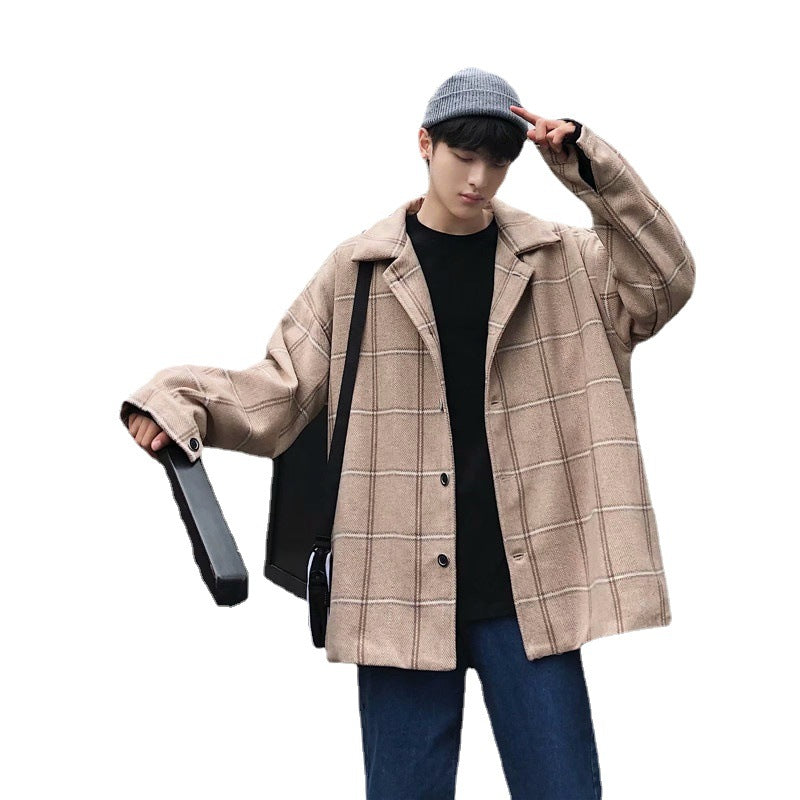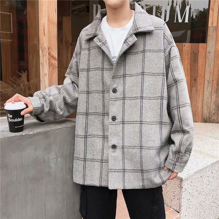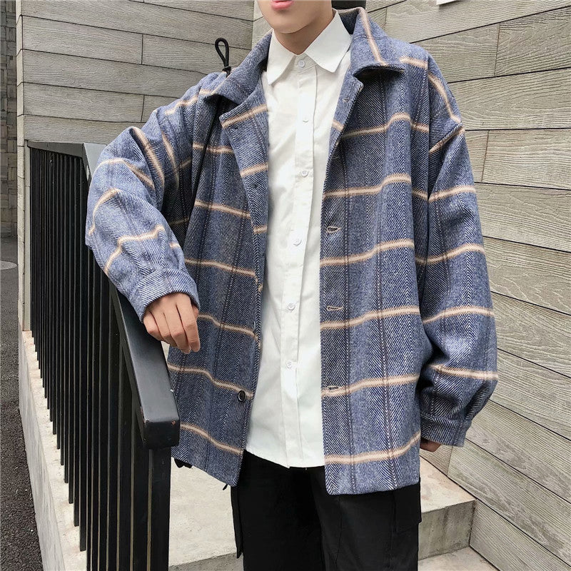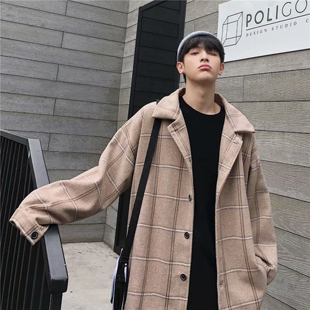 Plaid Overcoat for Men – Hong Kong Style Loose Wool Coat