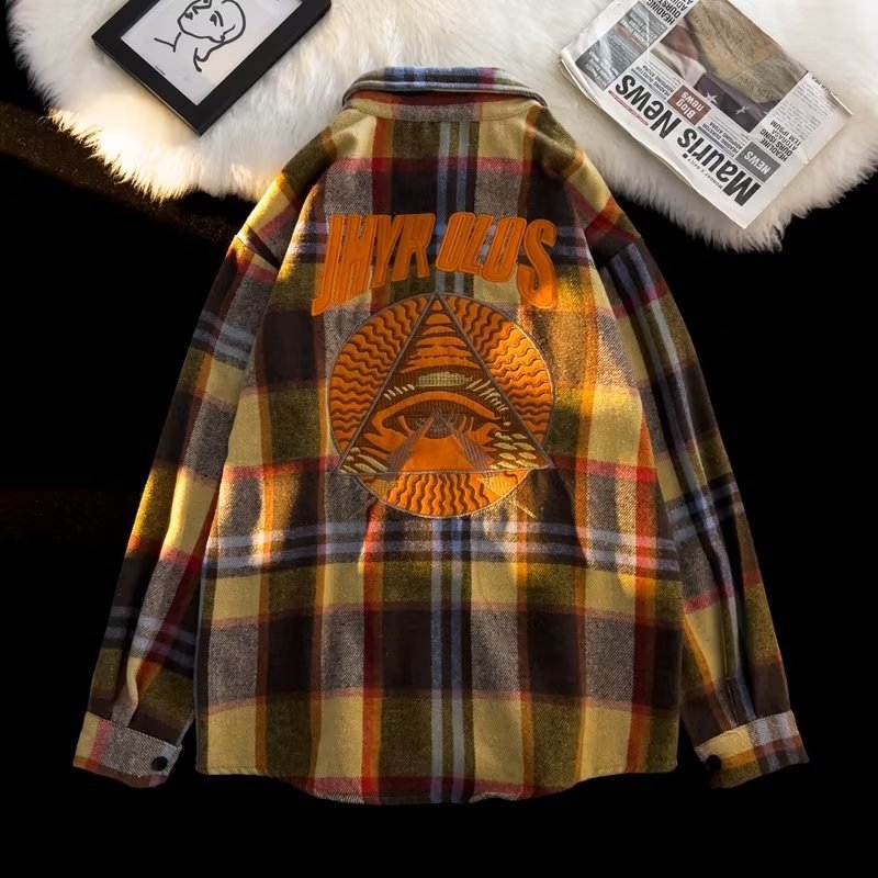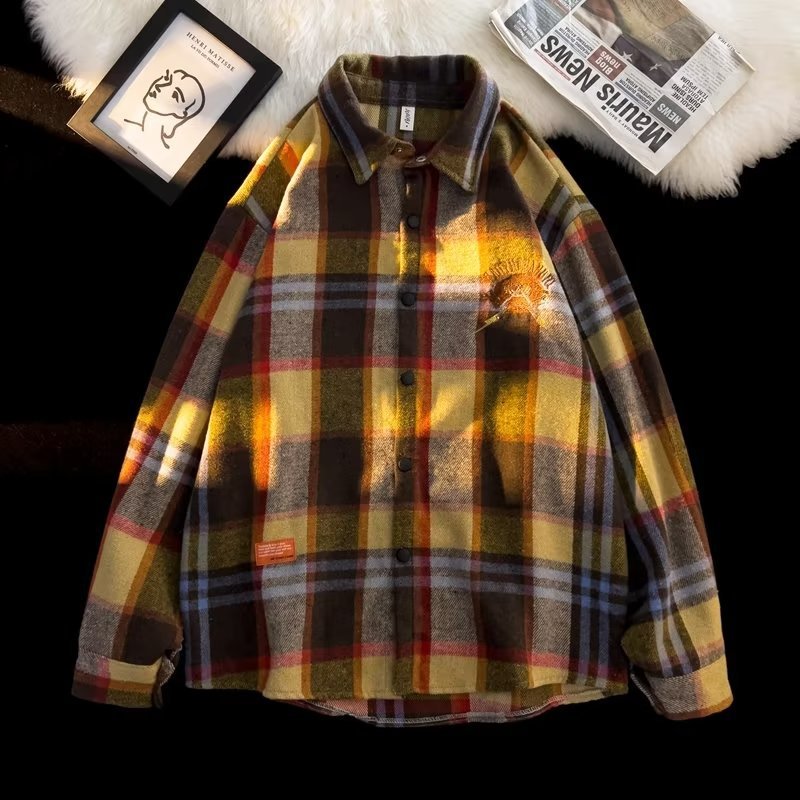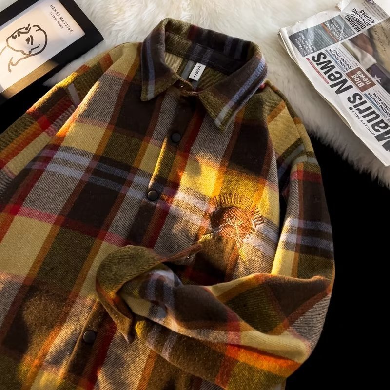 Channel high-street fashion with this plaid woolen men’s overshirt, inspired by Hong Kong-style and modern street trends. With embroidered details and a relaxed cut, it’s a bold yet practical layering piece for autumn and winter.