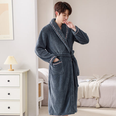 This plus-size men’s nightgown and bathrobe is a must-have for cold-season homewear. Upgrade your autumn and winter wardrobe with a long, thickened coral velvet nightgown that combines warmth, comfort, and style for ultimate relaxation. 🧵
