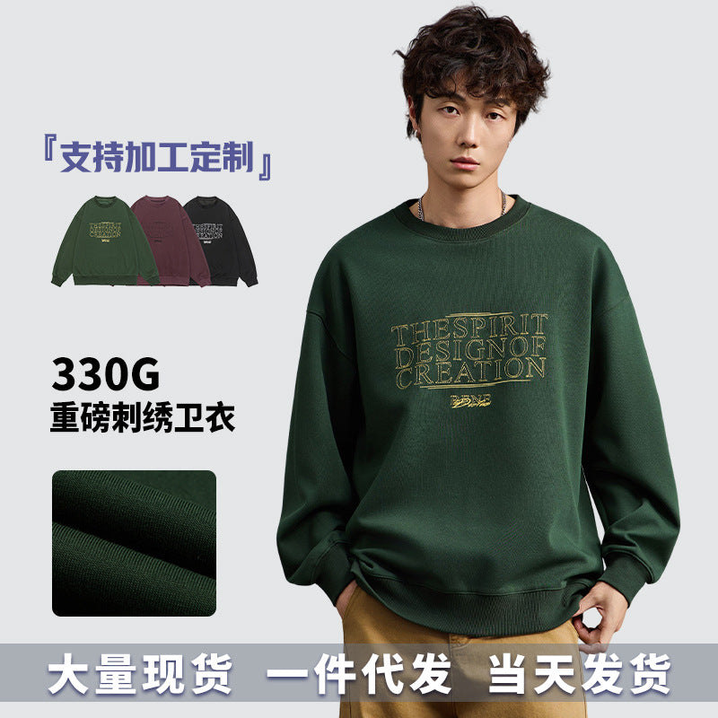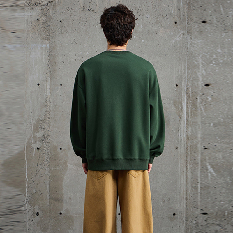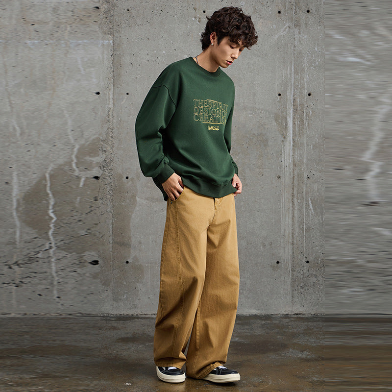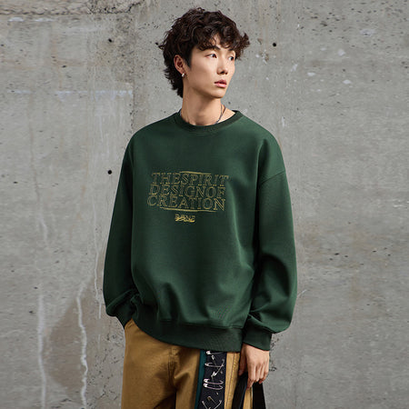 Embroidered Crewneck Sweatshirt – Men’s Autumn Retro Pullover