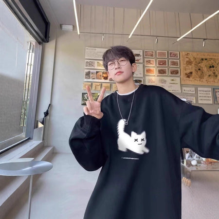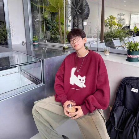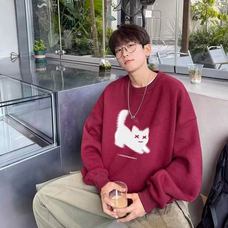 Men’s Retro Crewneck Sweatshirt – Heavy Loose Casual Top